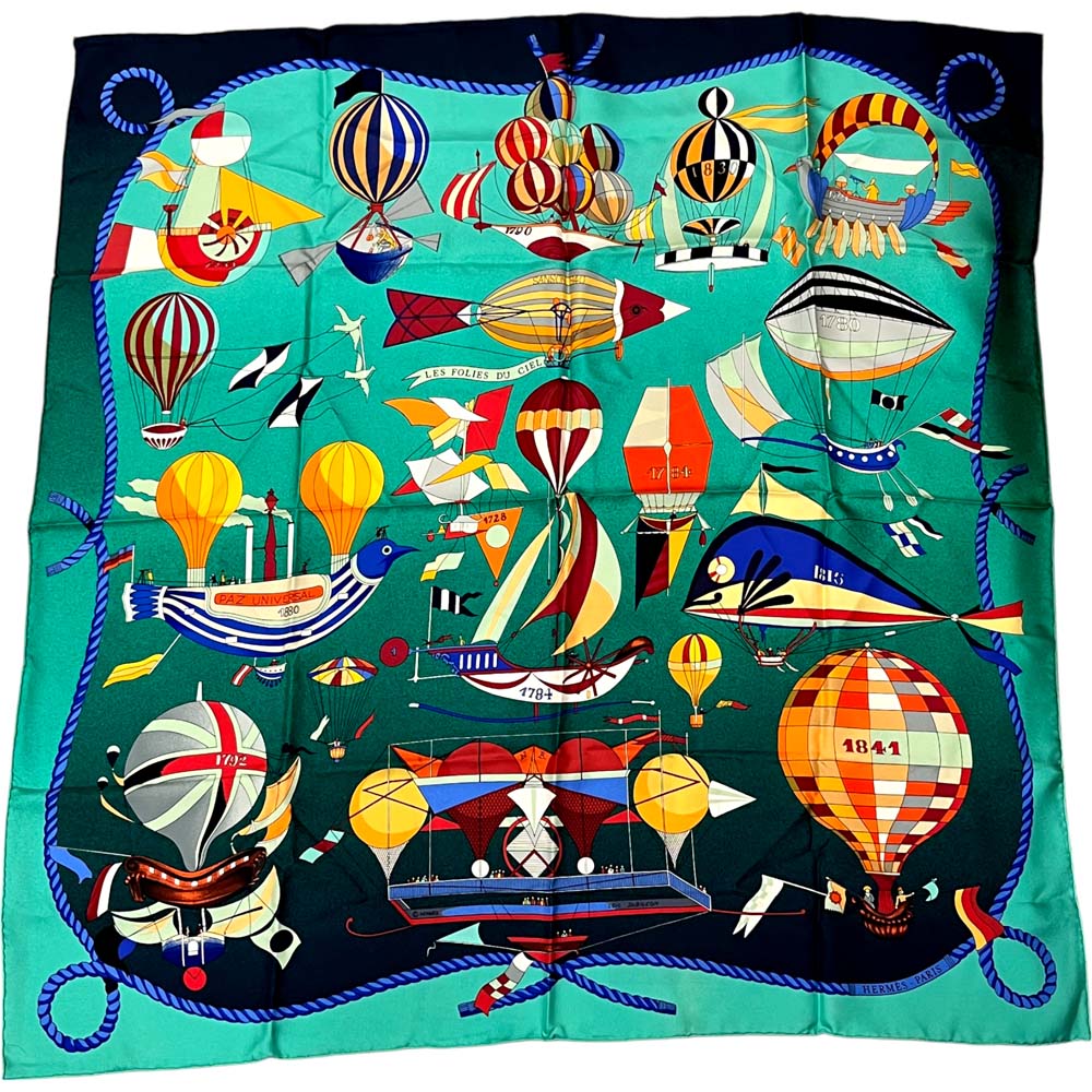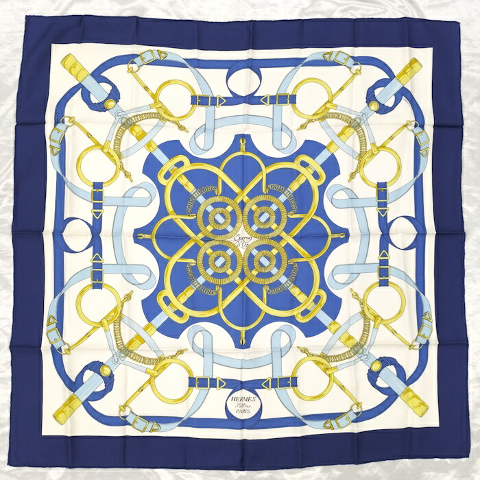 美品◎HERMES カレ90 Caraibes カリブ鳥 大判スカーフ ブルー エルメス / HERMES スカーフ カレ 90 カリブ 花 鳥 青 シルク 中古